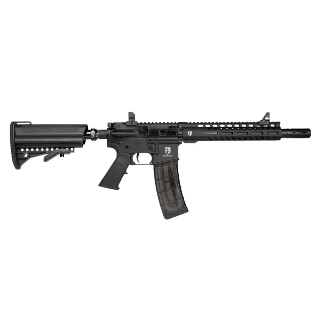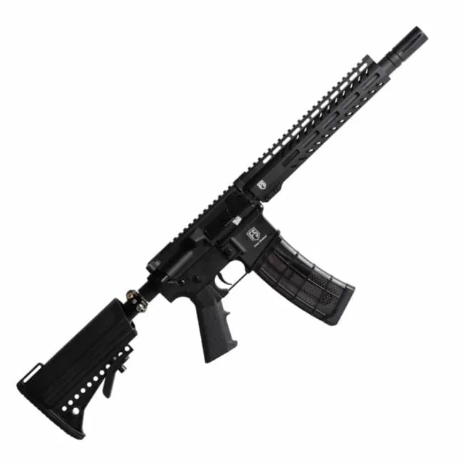 La revolucionaria pistola de paintball alimentada por cargador First Strike T15 es la elección perfecta para cualquier jugador de paintball que busque lograr una verdadera plataforma de rifle AR 1 a 1 sin sacrificar el rendimiento en el campo. El First Strike T15 es el primero de su tipo en ofrecer un diseño realista y de perfil bajo al tiempo que mantiene la capacidad de disparar bolas de pintura de calibre .68 de tamaño completo y rondas First Strike. Eliminar al oponente a larga distancia es donde un jugador con el T15 realmente puede brillar usando los cargadores First Strike de 19/20 rondas incluidos. ¡Usar cargadores que ofrecen un diseño de alimentación continua significa que puedes disparar 20 rondas sin tener que quitar o voltear tu cargador para obtener más bolas de pintura! El T15 ciertamente puede repartir castigos, pero también puede soportarlos con un cuerpo de aluminio liviano y duradero que resistirá las condiciones de juego más duras. La apariencia realista del First Strike T15 se lleva un paso más allá con la implementación de un tanque de aire de 13/3000 psi en stock. Este tanque de aire totalmente regulado crea una fuente de aire constante para disparar bolas de pintura, mientras permanece de perfil bajo y completamente fuera del camino. Con la capacidad adicional de disparar bolas de pintura calibre .68 y First Strike desde un cargador o cambiar a un diseño alimentado por tolva para un juego prolongado, la Tiberius T15 es verdaderamente una pistola de paintball universal. Si eres un jugador de paintball dedicado que busca llevar tu juego al siguiente nivel o alguien que busca comenzar bien en el mundo de las pistolas de paintball con alimentación magnética, entonces quieres la pistola de paintball Tiberius Arms T15.