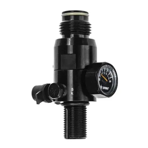 Spirit Field nos ofrece este regulador para sus botellas de HPA compatible con todos los tamaños. Puede ser también compatible con botellas del mismo tipo de otras marcas. Se trata del que llevan de serie estas botellas y puede ser un estupendo recambio por si se daña o se extravía el original, o simplemente queremos renovarlo. Soporta hasta 3000 PSI / 200 BAR de presión y ofrece una salida continua de 800 PSI.