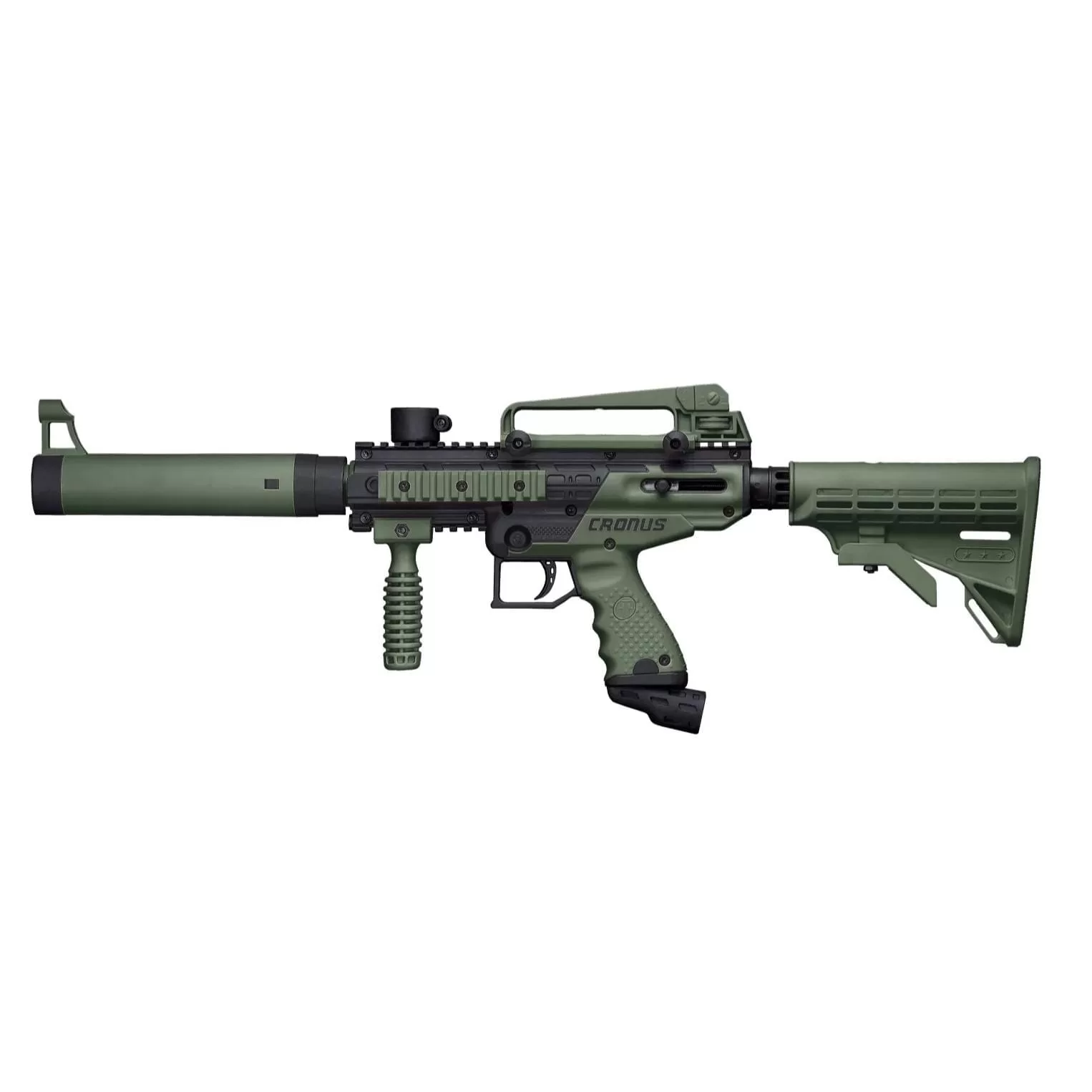 El Tippmann Cronus es el marcador mecánico ideal para los jugadores de paintball principiantes. El diseño ligero y compacto es fácil de manejar y se caracteriza por un diseño resistente y ergonómico con asas de goma de agradable diseño y un interior mecánico totalmente metálico.